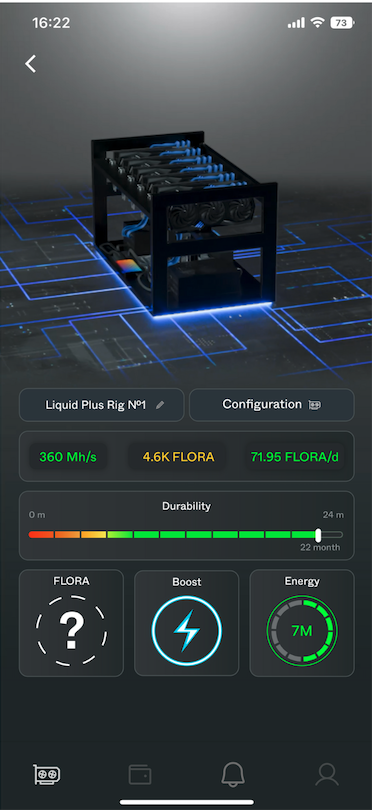 Upon a successful Energy installation, you will be able to switch the mining coin, activate the "Boost" feature, and review your mining statistics.