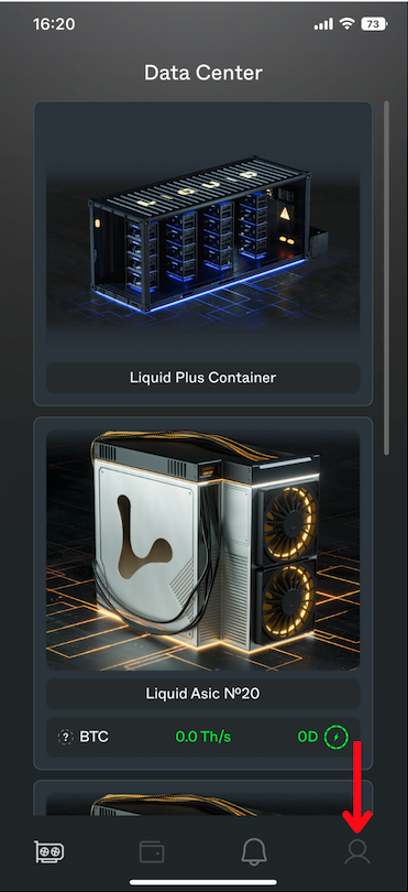 To implement the second Energy installation option, go to the "Profile" section by clicking on the profile icon in the bottom menu.