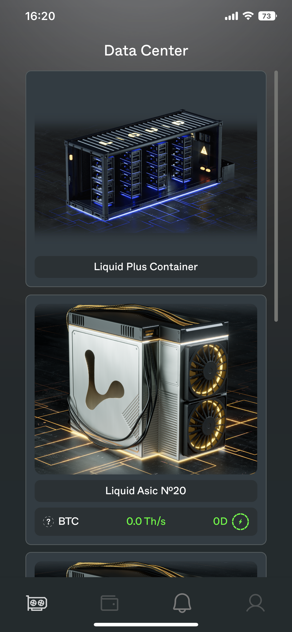 To get started, please log in to the Liquid Mining app. After that you will find yourself on the Data Center page. There are two methods of Installing a Liquid Charger for your Rig, and we will demonstrate both. Ultimately, the decision is up to you.