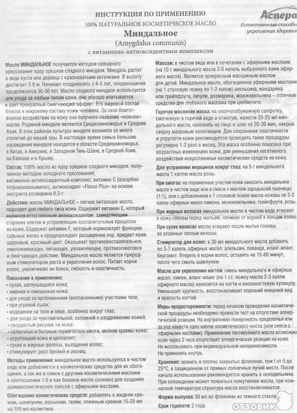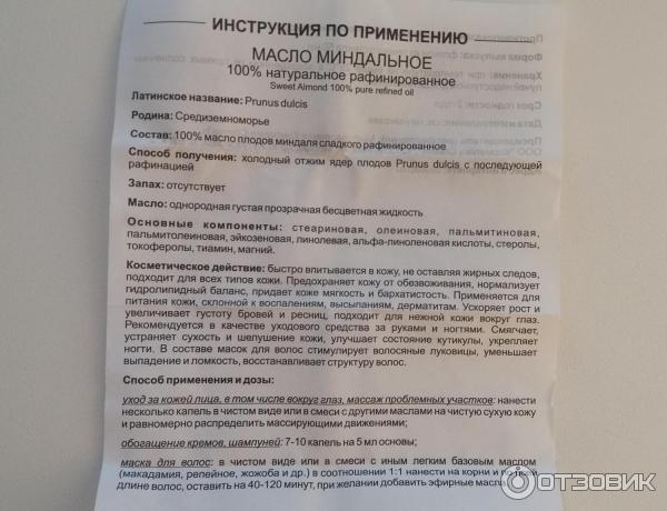 Инструкции миндальное масло