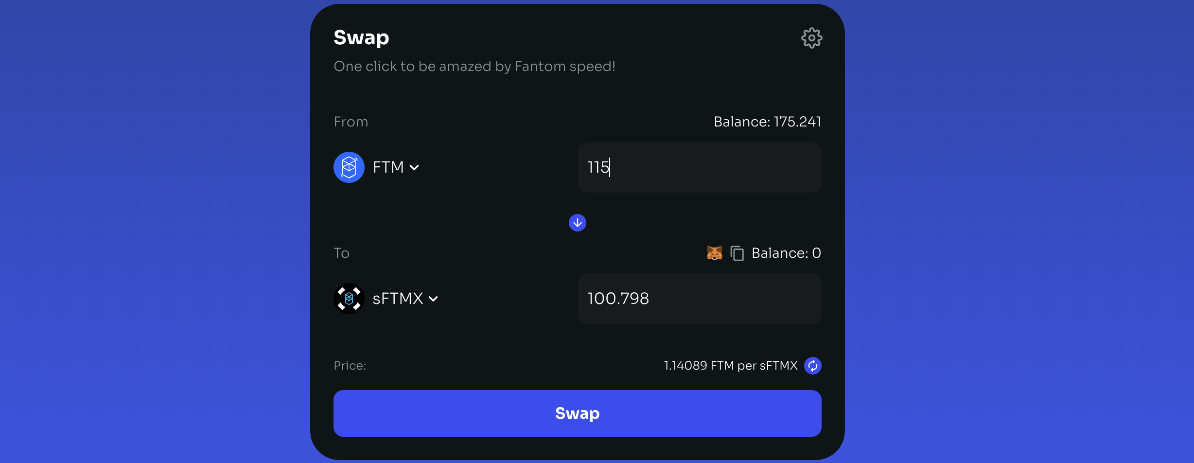 Для 100 $sFTMx нужно будет свапнуть ~115 FTM