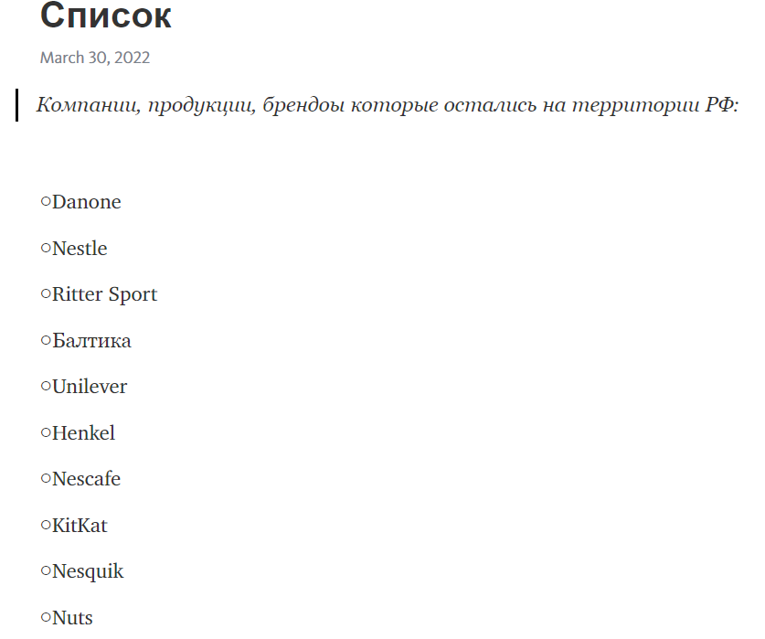 March 30, 2022- В списке выбираем компанию, бренд, продукцию. Список: https://telegra.ph/Spisok-04-05-3