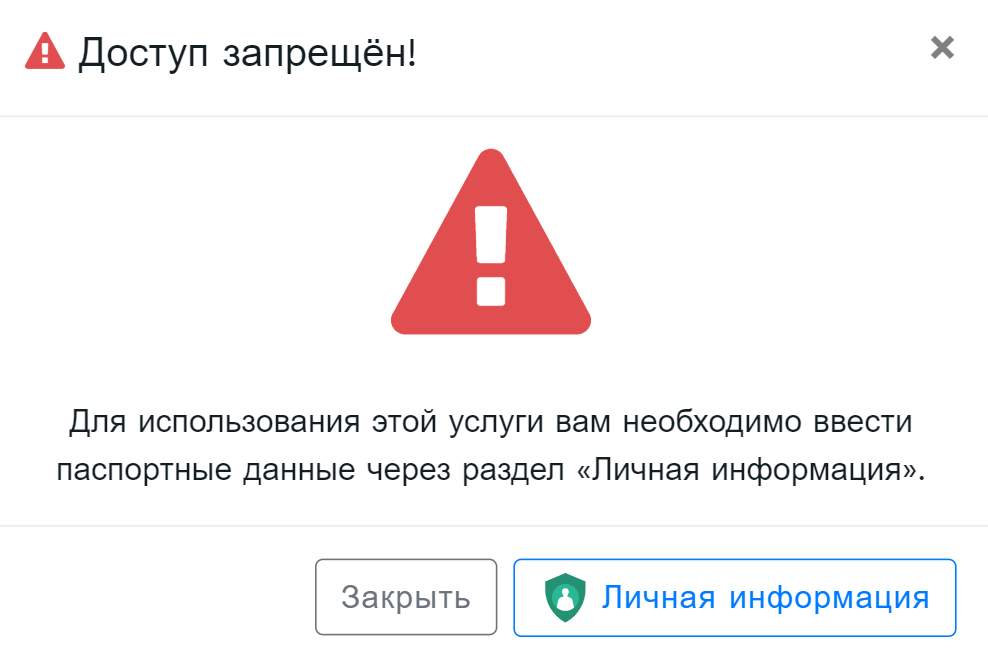 Для входа в раздел «Приём 2020» пользователь должен заполнить личную информацию. Если пользователь не заполнил личную информацию, появится следующее окно с предупреждением (Рис. 8).