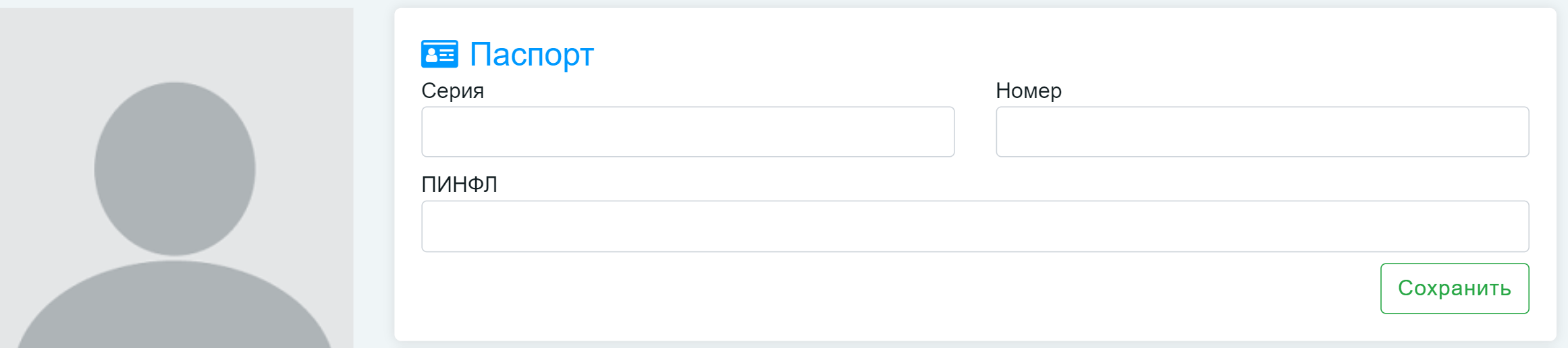 Раздел «Личная информация» состоит из разделов «Паспорт», «Адрес постоянного место жительства» и «Оконченное образовательное учреждение».