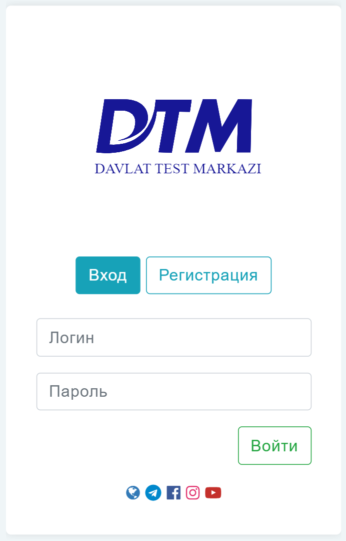 Доступ к данной системе осуществляется через abitur.dtm.uz. (Рис. 1)