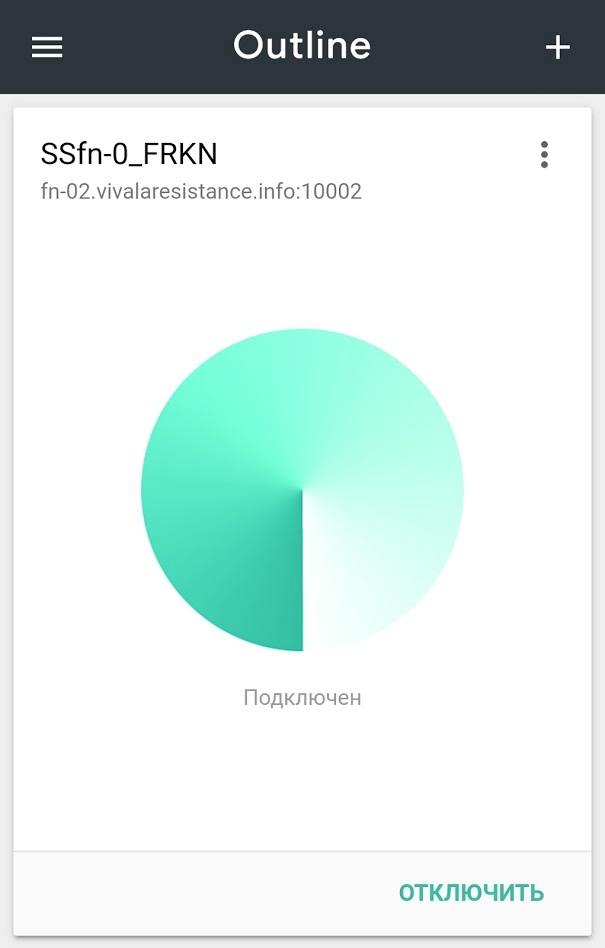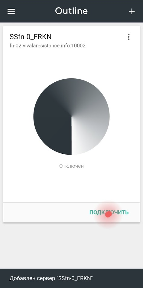 4. Конфигурацию сервера добавлена, нажмите "Подключить", чтобы активировать VPN.