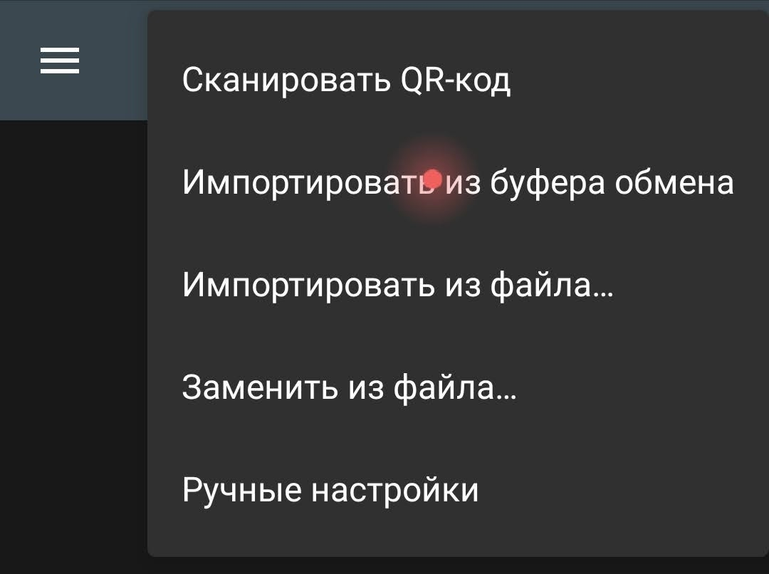 Затем "Импортировать из буфера" или при необходимости "Сканировать QR-код"