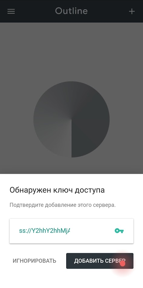 3. Откройте установленное приложение Outline. Оно предложит добавить скопированный ранее ключ, либо вставьте его в поле и нажмите "Добавить сервер"