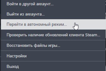 Левый верхний угол -> Steam -> Перейти в автономный режим