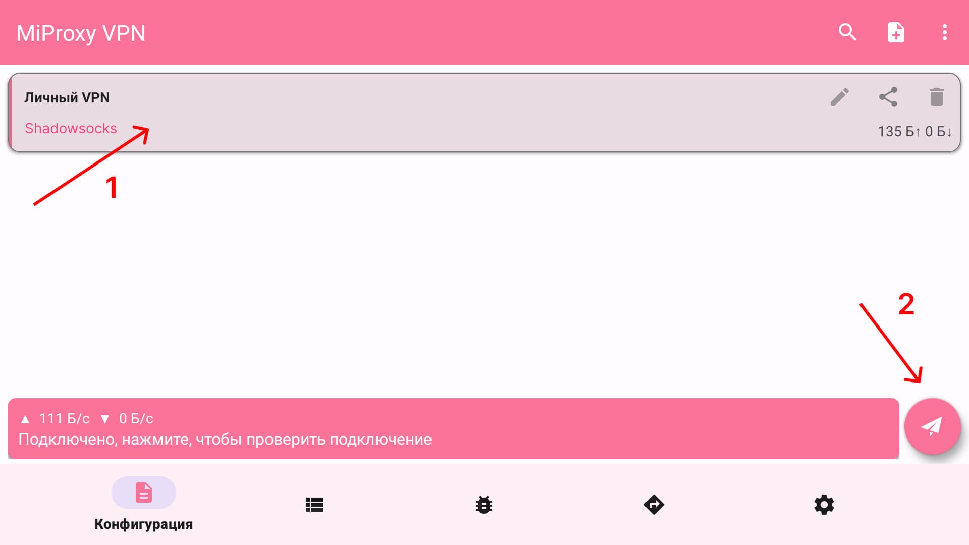 14. После того как конфиг добавился, нажимаем на него, чтобы он активировался и далее кликаем в правом нижнем углу на иконку самолетика