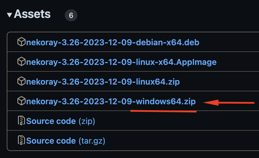 После того как скачаете файл "Windows64.zip", распакуйте его и в списке файлов выберите и запустите "nekoray.exe"