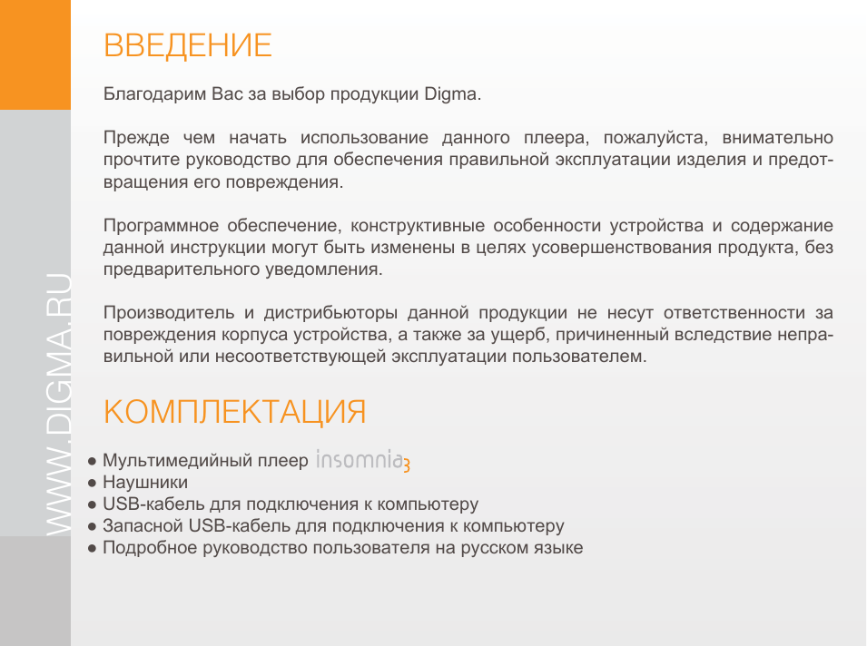 Инструкция плеера digma