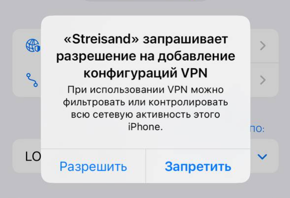 6. При первом подключении, потребуется дать разрешение приложению создать VPN подключение.