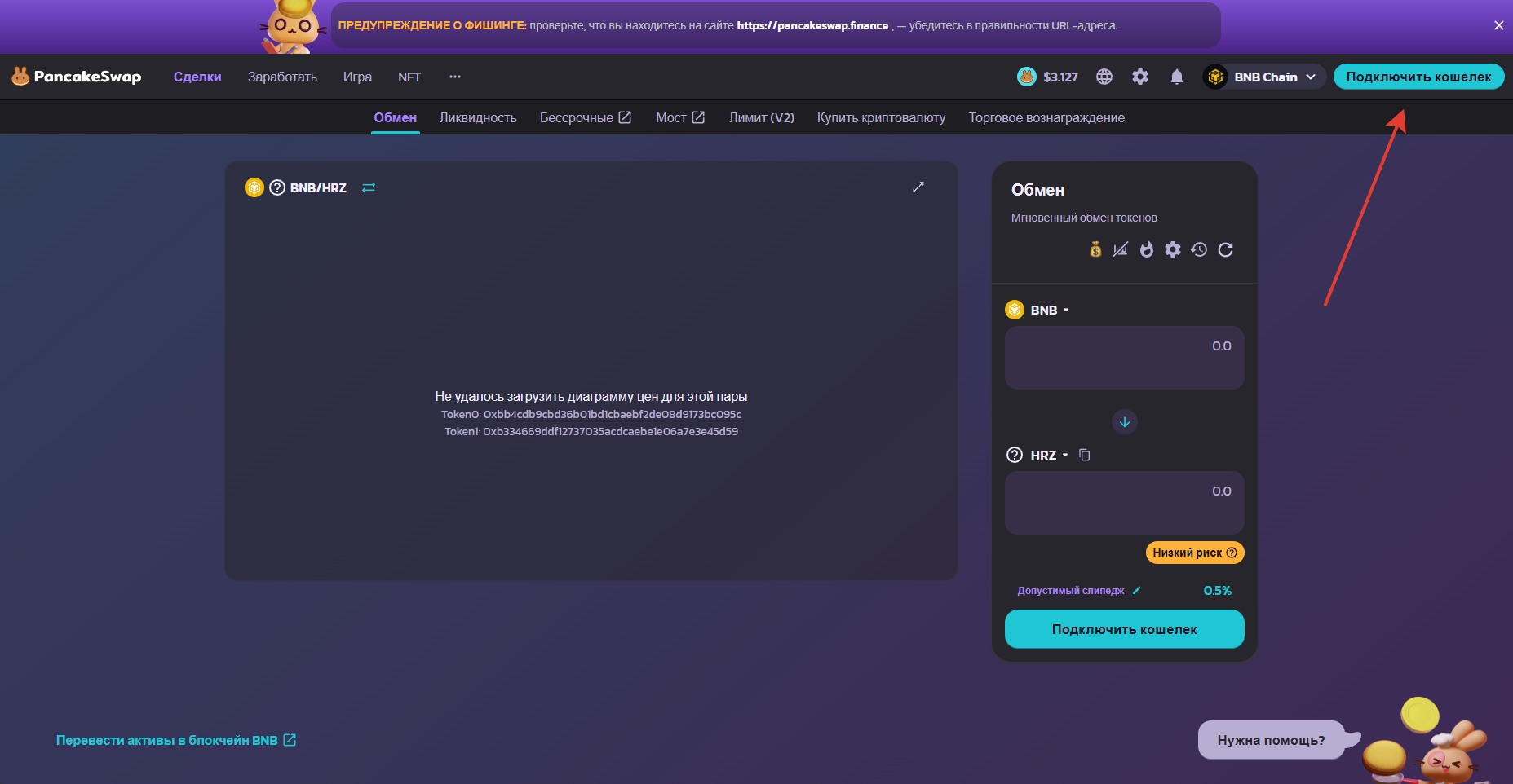 Итак, для начала заходим на Pancake swap