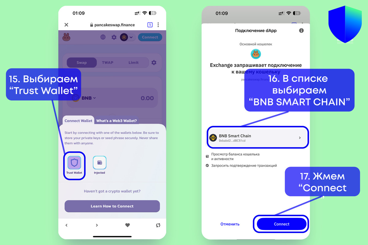 15. Выбираем кошелек Trust Wallet