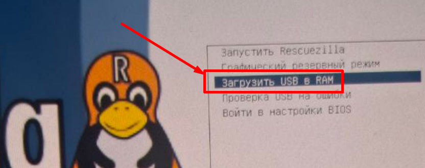 - Выбираем Загрузить USB в RAM и ждем окончания загрузки.