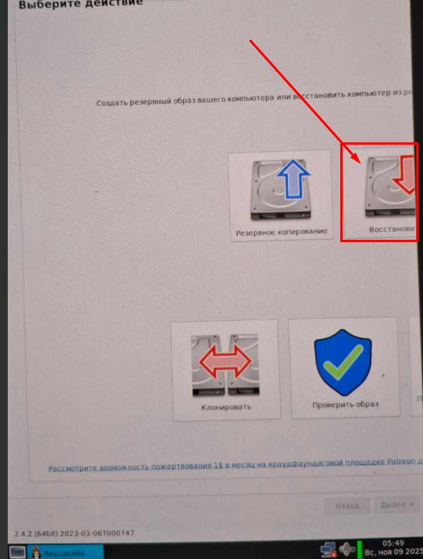 - Выбираем образ восстановления и нажимаем Далее.