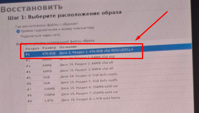 - Выбираем в списке свою флешку и ждем загрузки Rescuezilla.