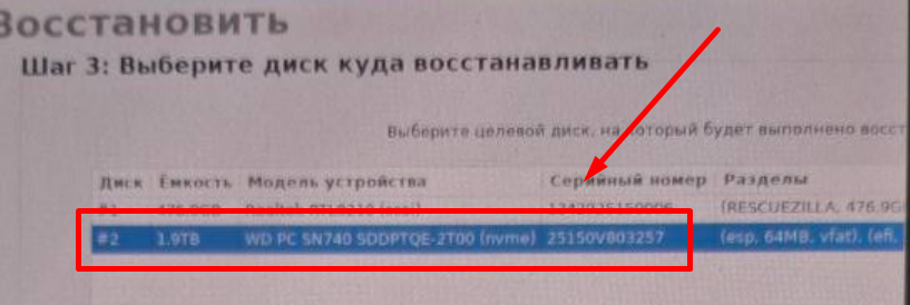 - Выбираем внутренний SSD диск и нажимаем Далее.