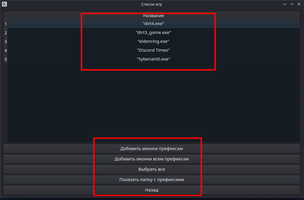 В верхней части окна отображаются префиксы игр, в нижней кнопки для работы с префиксами, разберем их все слева на право.