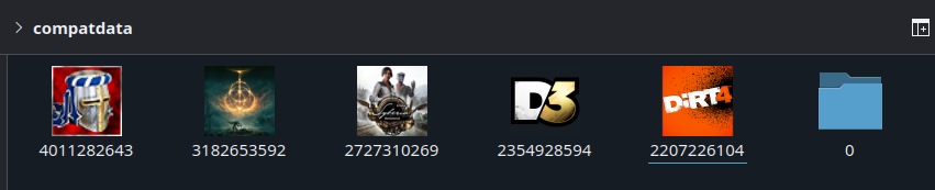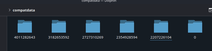 - Выбираем префикс и нажимаем кнопку Открыть папку с префиксом игры, после чего откроется каталог.