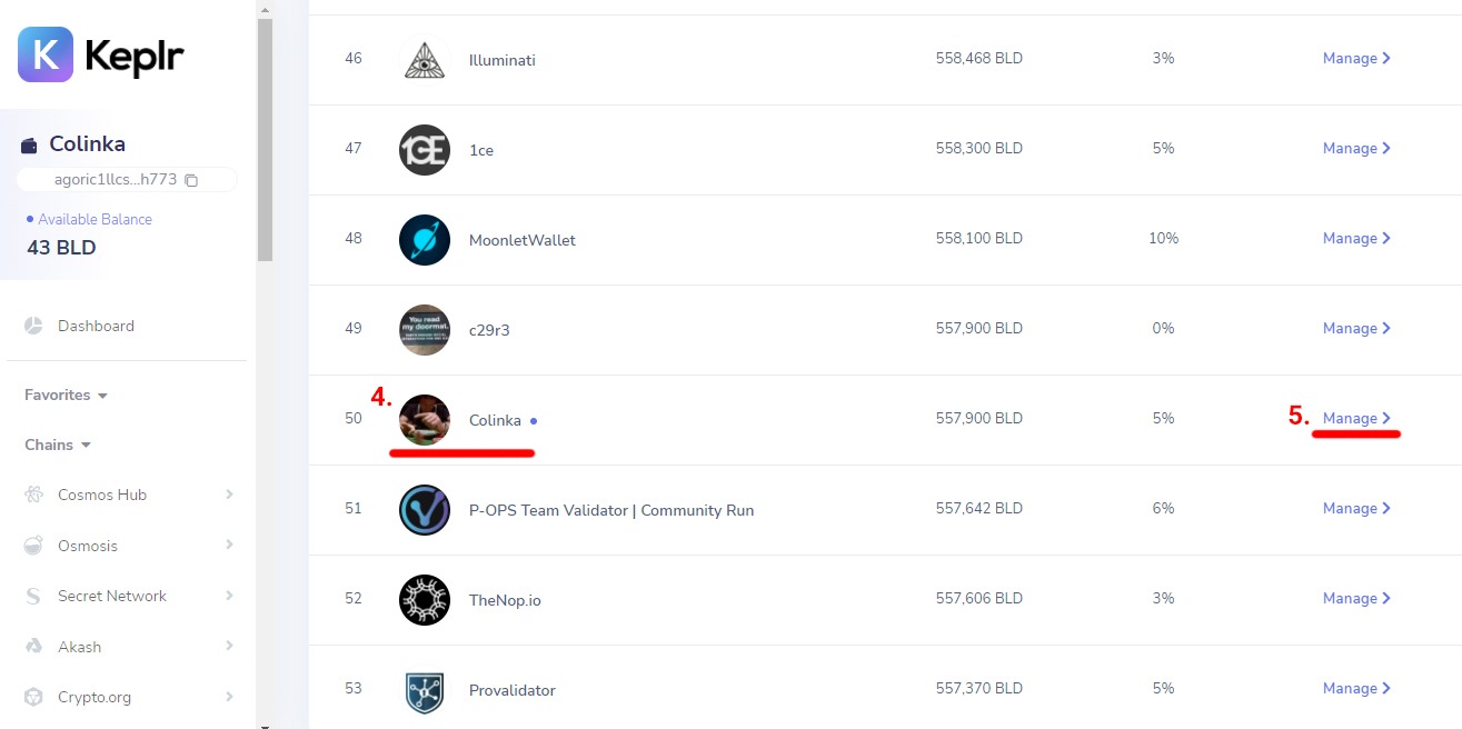 5. Находим валидатора Colinka и нажимаем кнопку "Manage"