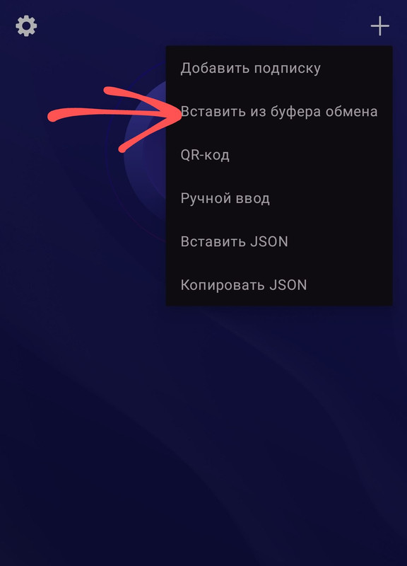 Далее приложение покажет способы, как можно добавить подписку. Выбираем "Вставить из буфера обмена"
