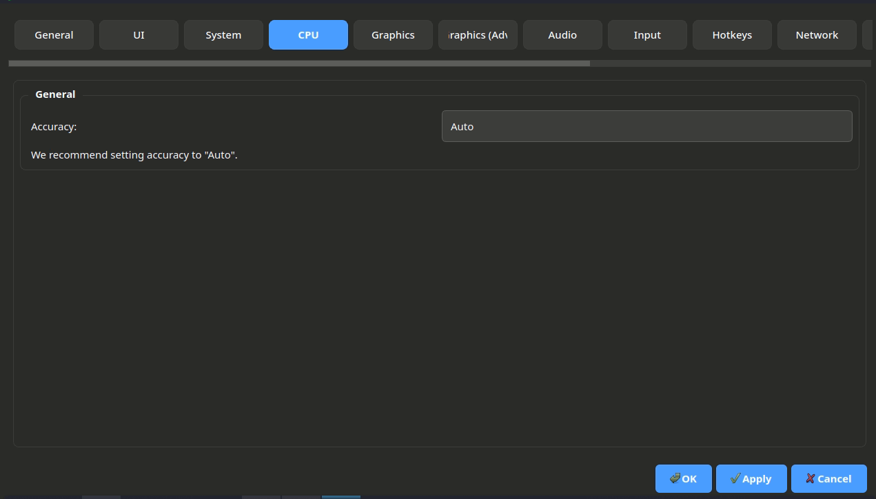- Accuracy Level - уровень точности эмуляции. Увеличивается в случае багов в текстурах или при наличии артефактов. (Рекомендуется оставить по умолчанию (LOW))