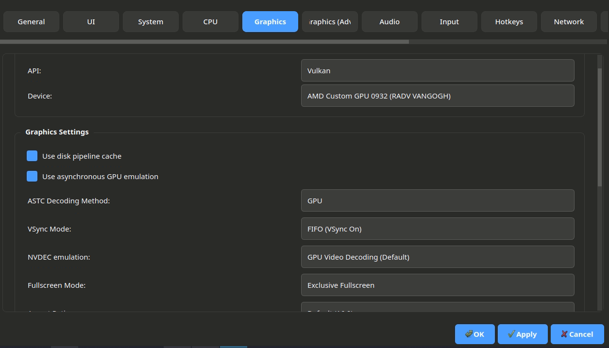 - Use vulkan pipeline cache - позволяет использовать готовы кеш шейдеров (накапливающиеся во время игры, либо уже готовый). Использует накопившийся кеш для стабильной работы игры. Включение на деке обязательно!