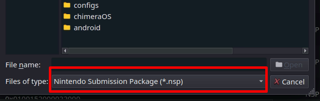 - Если файлов не видно, то выбираем Nintendo Submission Package (*.nsp)
