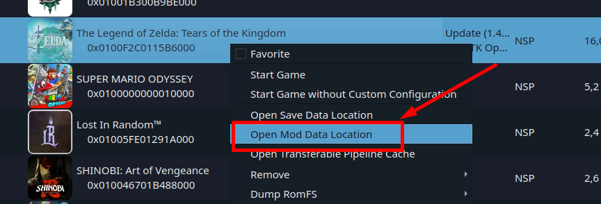 - Нажимаем L2 по игре, выбираем "Open Mod Data Location"