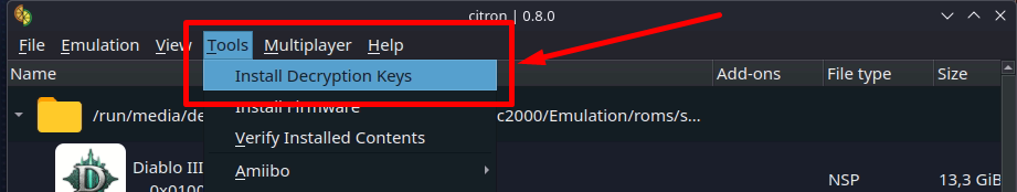 - Переходим в Tools - Install Descryption Keys и выбираем prod.keys