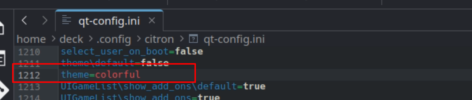 - Открываем файл qt-config.ini при помощи Kate и ищем строку: theme=colorful