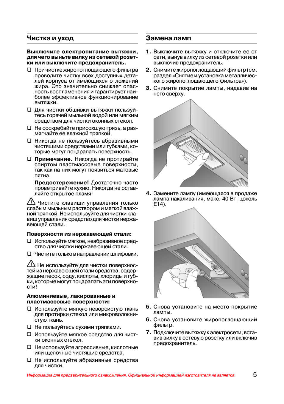 Инструкция по замене лампы