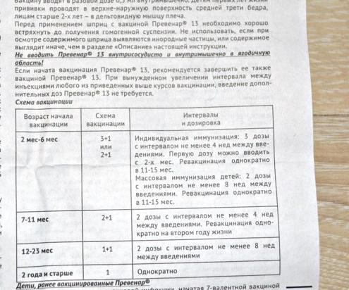 Инструкция вакцины превенар
