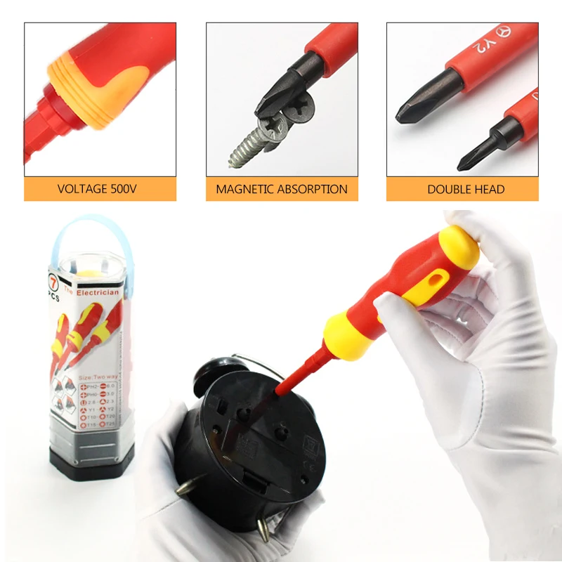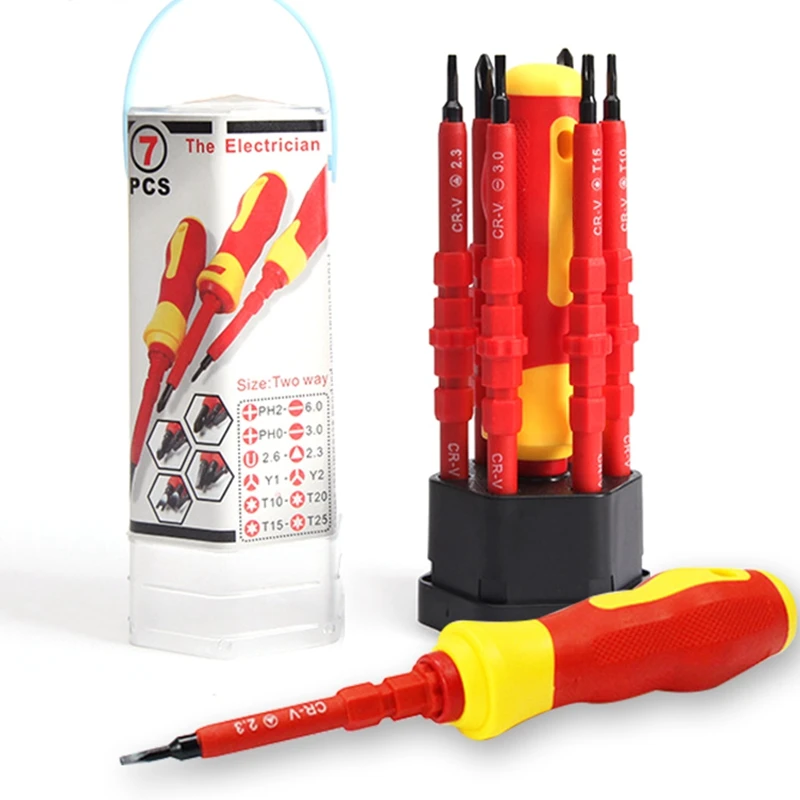 OrHozhCgHere you can buy Insulated Screwdriver Set 7Pcs Slotted Torx Magnetic Screwdriver Bits Double End Screw Bit Set For Electrican Hand Tools with free delivery to your post office.