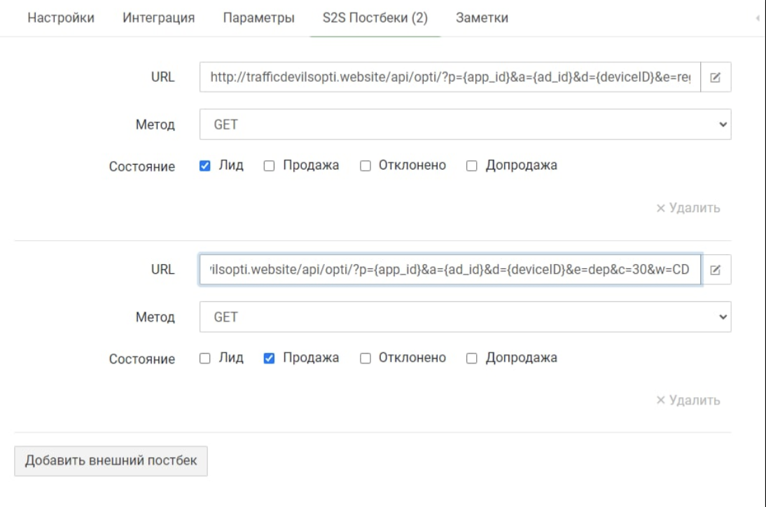 5. Выдаем s2s постбеки, для оптимизации: