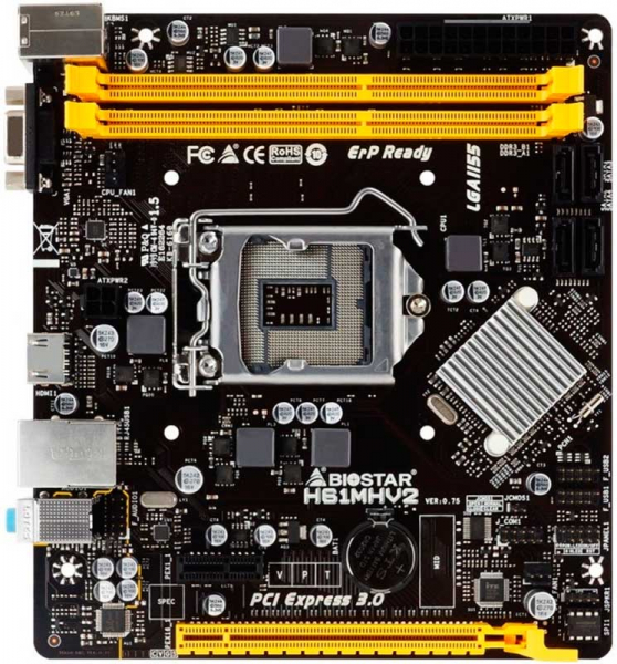 Материнская плата Biostar H61MHV2 Характеристики LGA 1155, Intel H61 , 2xDDR3-1600 МГц, 1xPCI-Ex16, аудио 5 .1, Micro-ATX подробнее