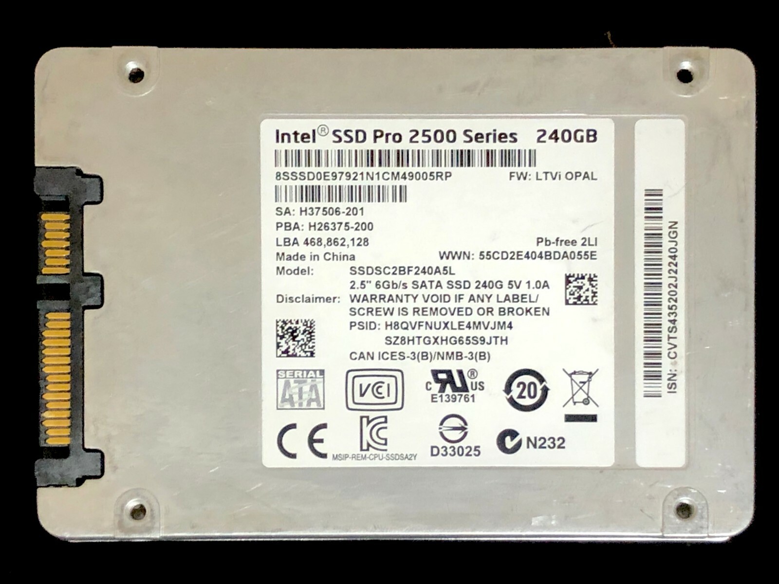 Intel ® SSD Pro 2500 Series ( 240GB , 2 .5in SATA 6Gb/s, 20nm, MLC) - Ordering and trade compliance information inclusive of change notifications, material declarations, ordering codes and trade compliance information .