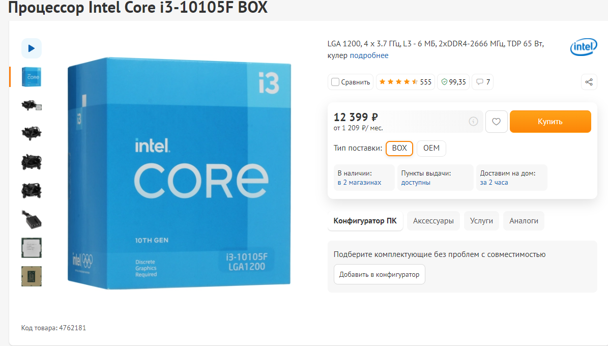 Intel core i3 10105 oem 122 фото