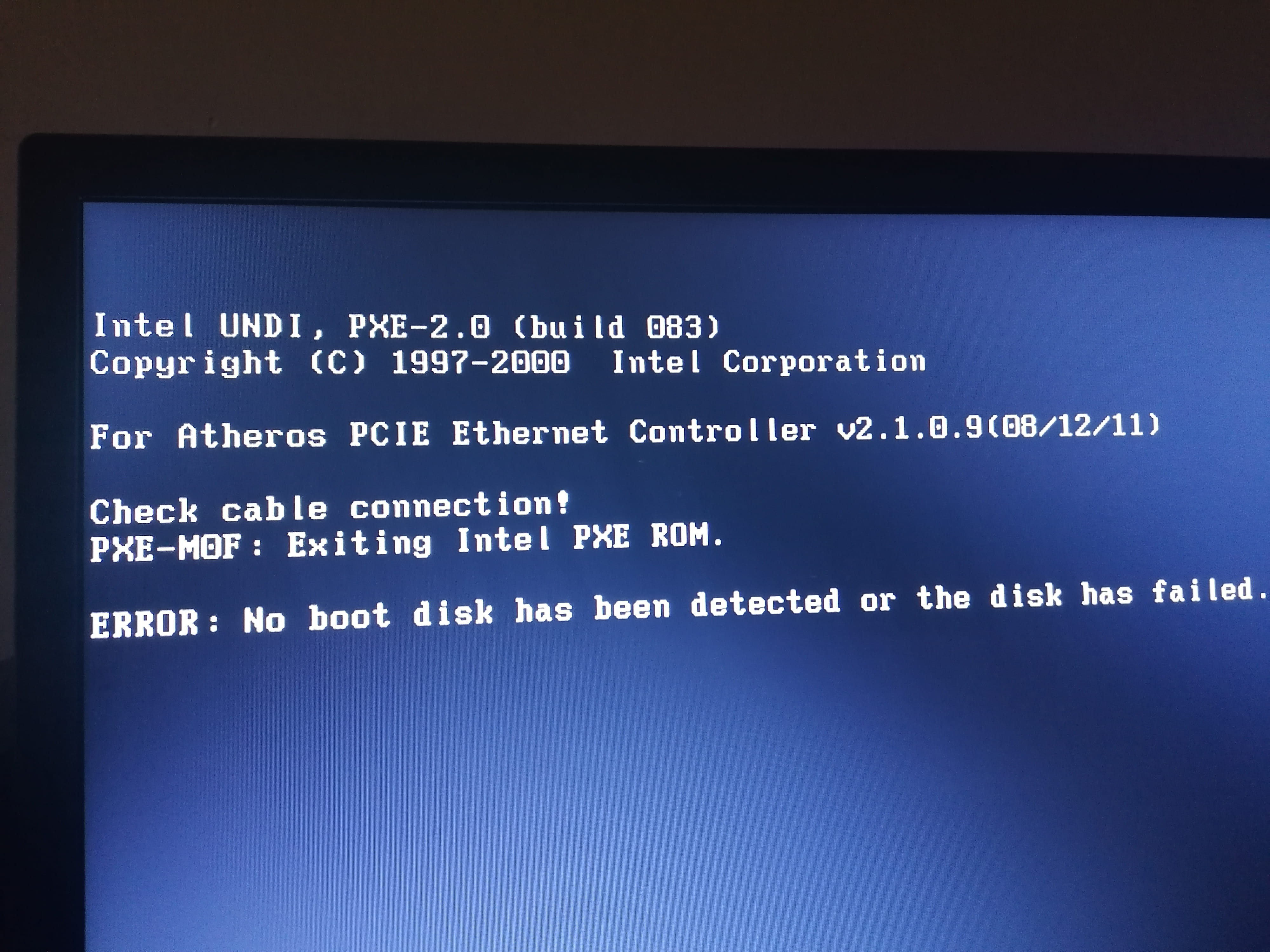 Intel undi pxe 2.1 что делать