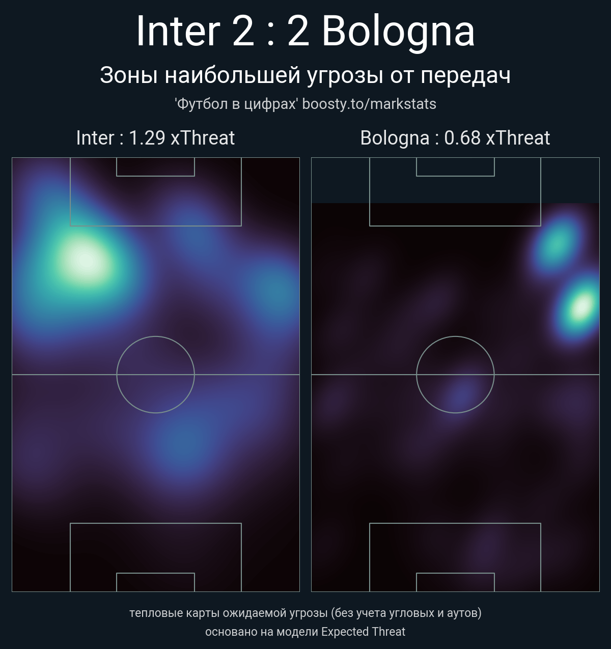 xThreat без учета угловых: 1.29 - 0.68