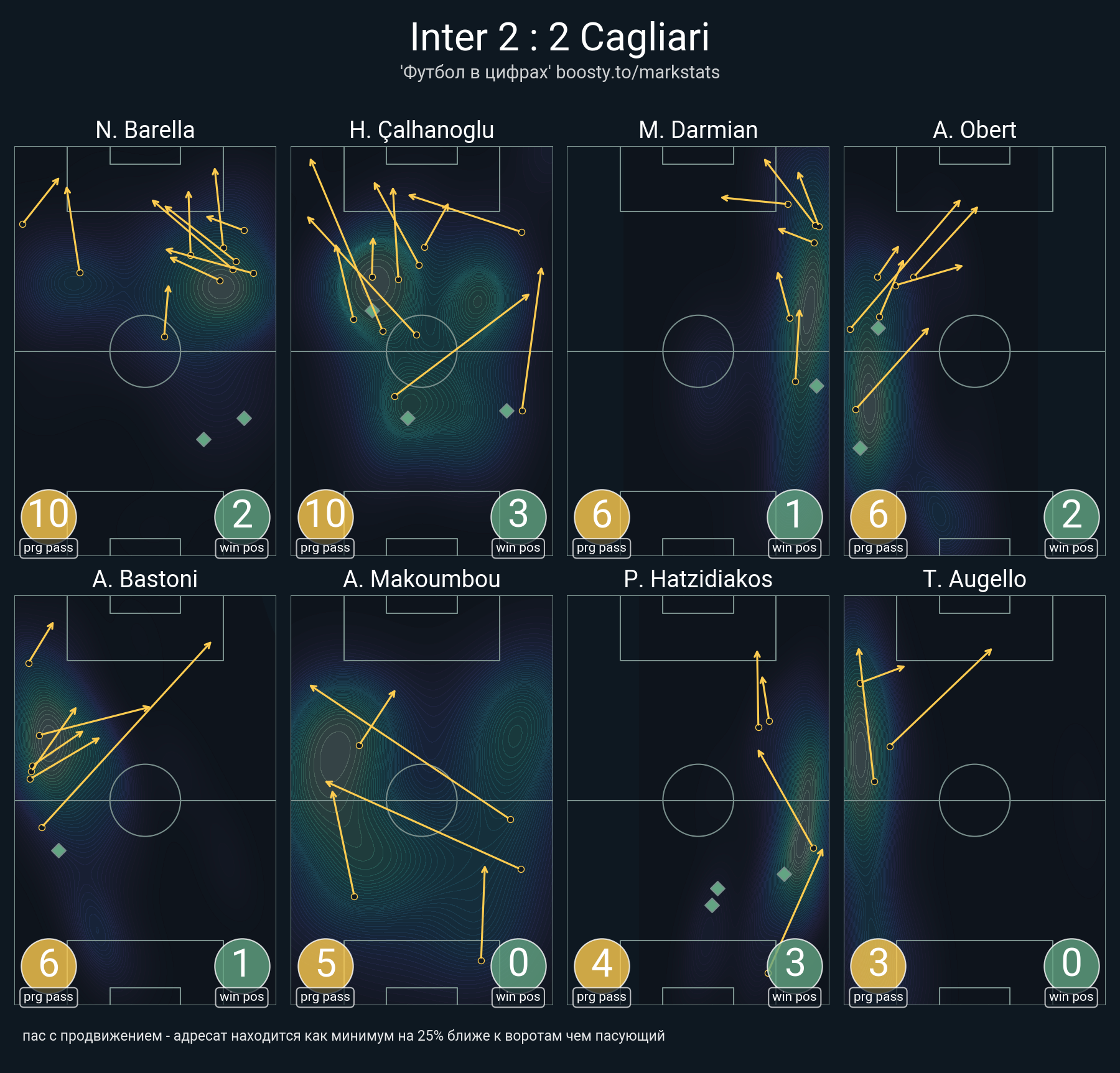 20 успешных передач из 25 попыток (1 ассист, 2 под удар, 3 с продвижением, 12 на трети соперника)