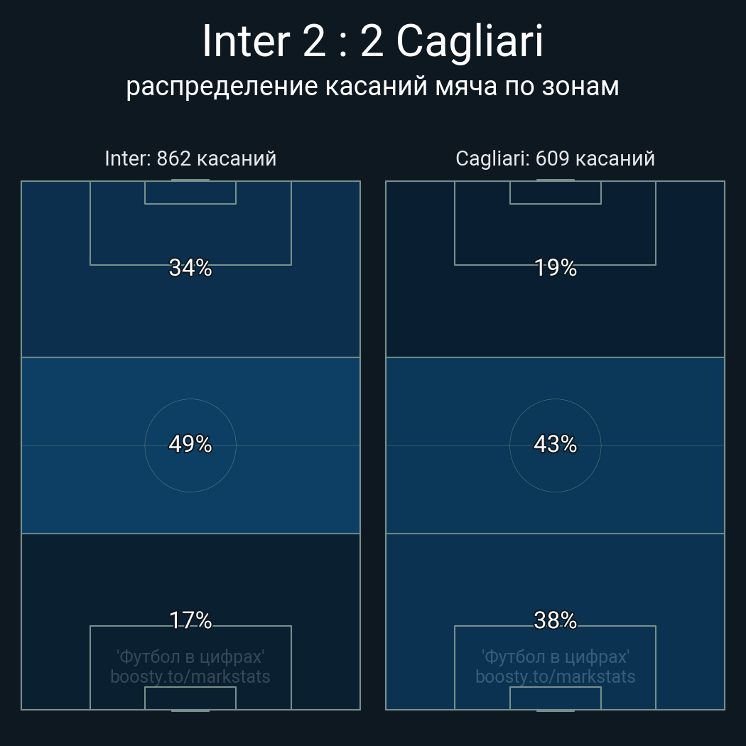 Касания в штрафной: 42 - 19