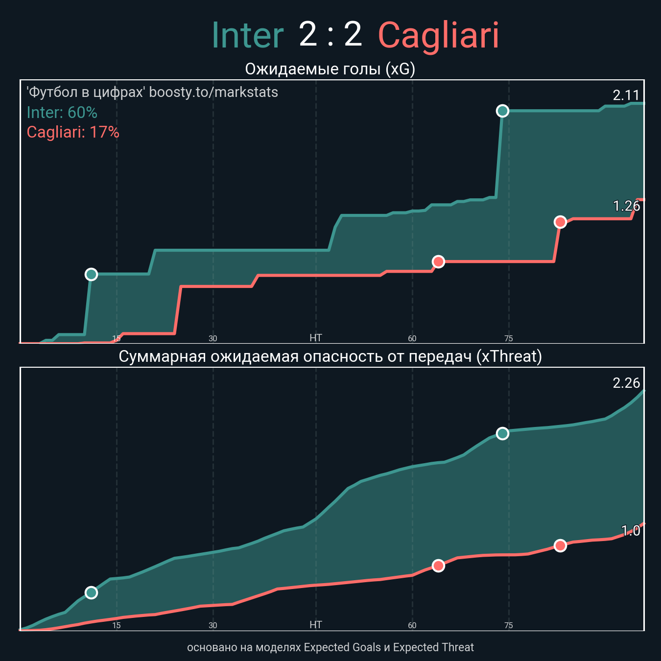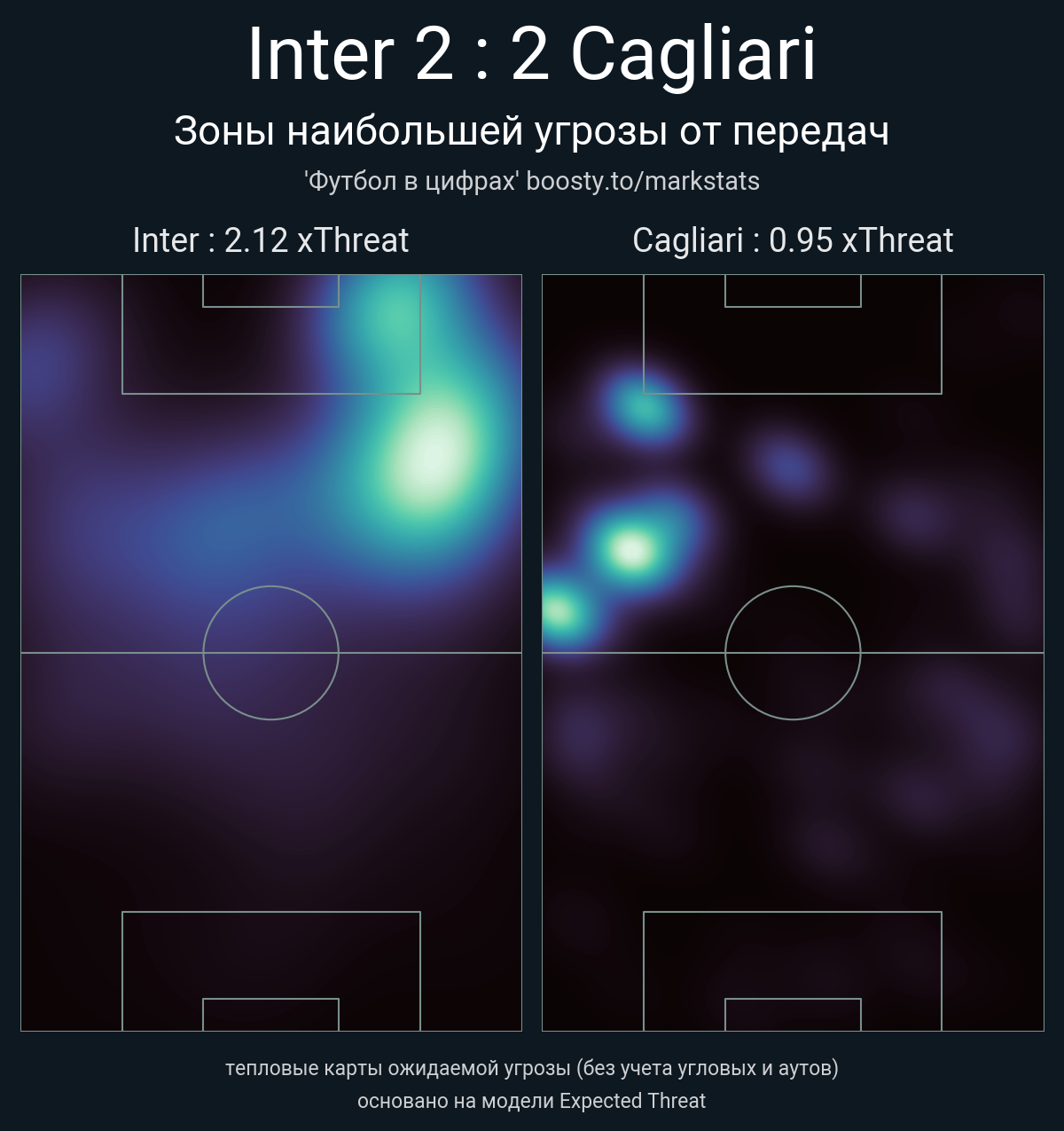 xThreat без учета угловых: 2.12 - 0.95
