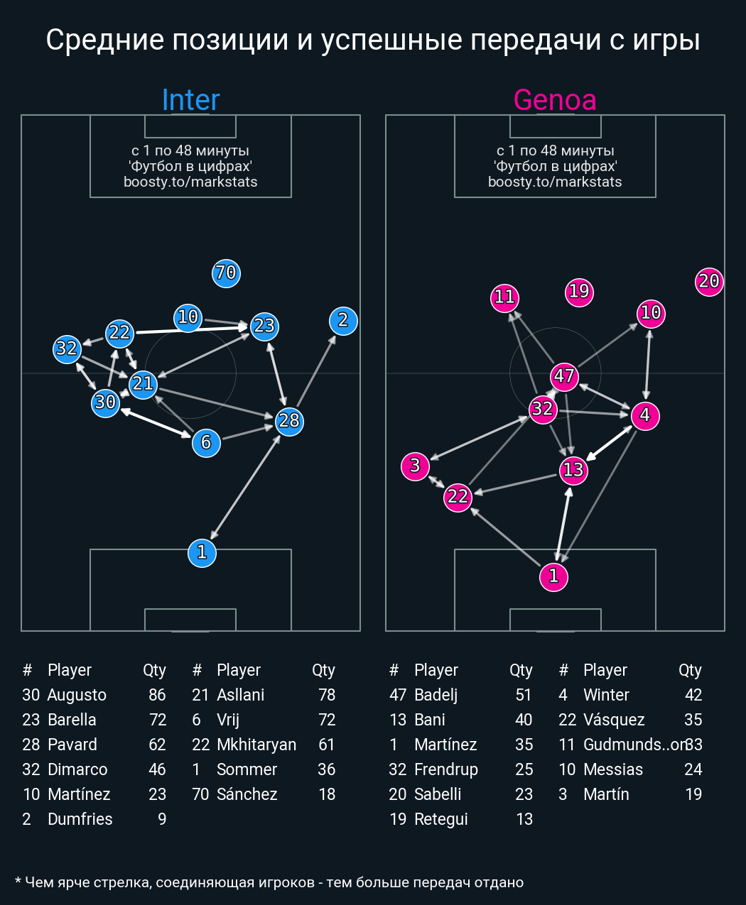 42 успешных передач из 47 попыток (3 под удар, 4 с продвижением, 8 на трети соперника)