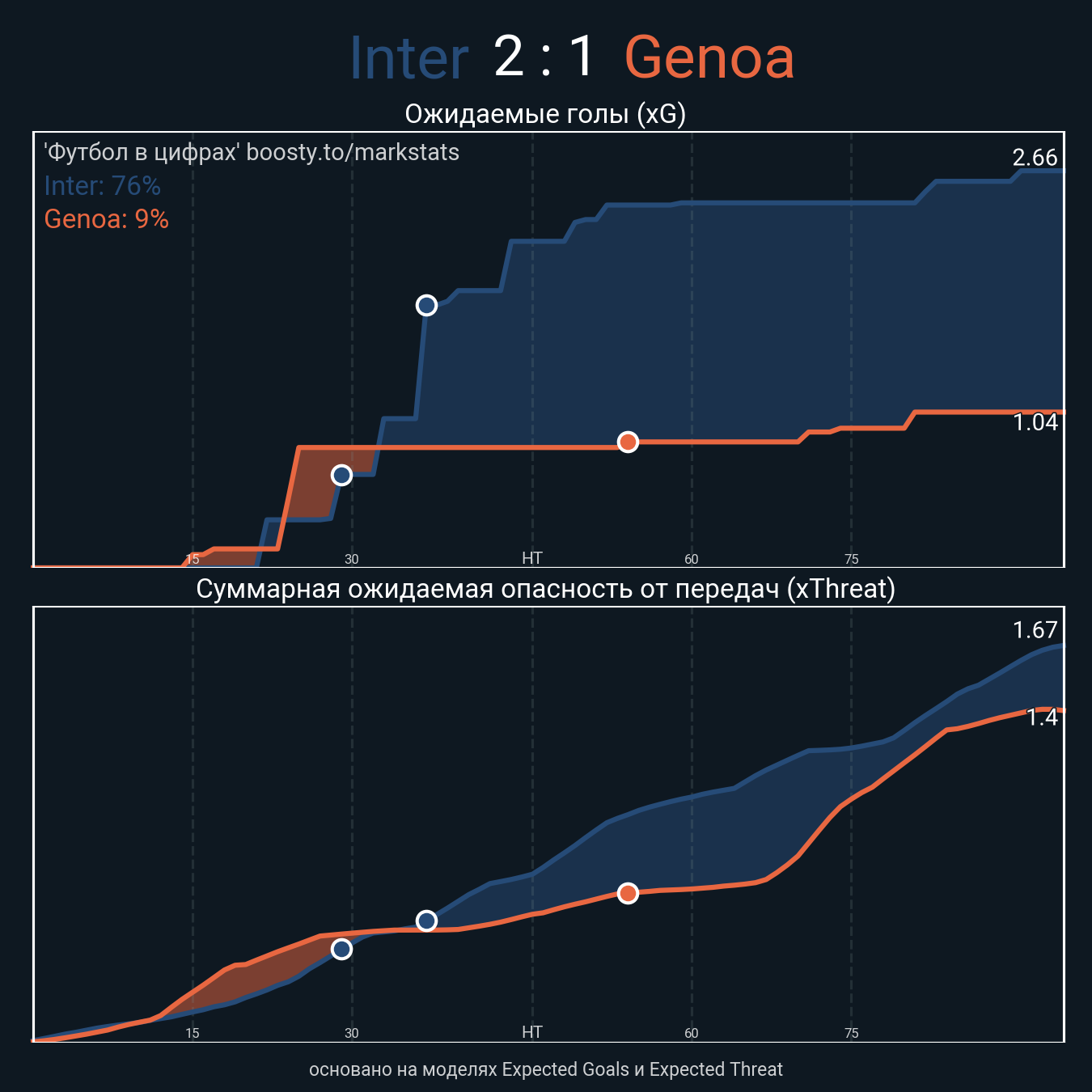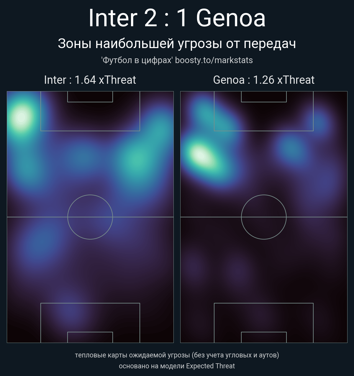 xThreat без учета угловых: 1.64 - 1.26