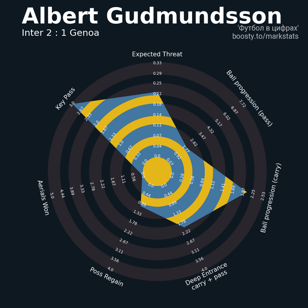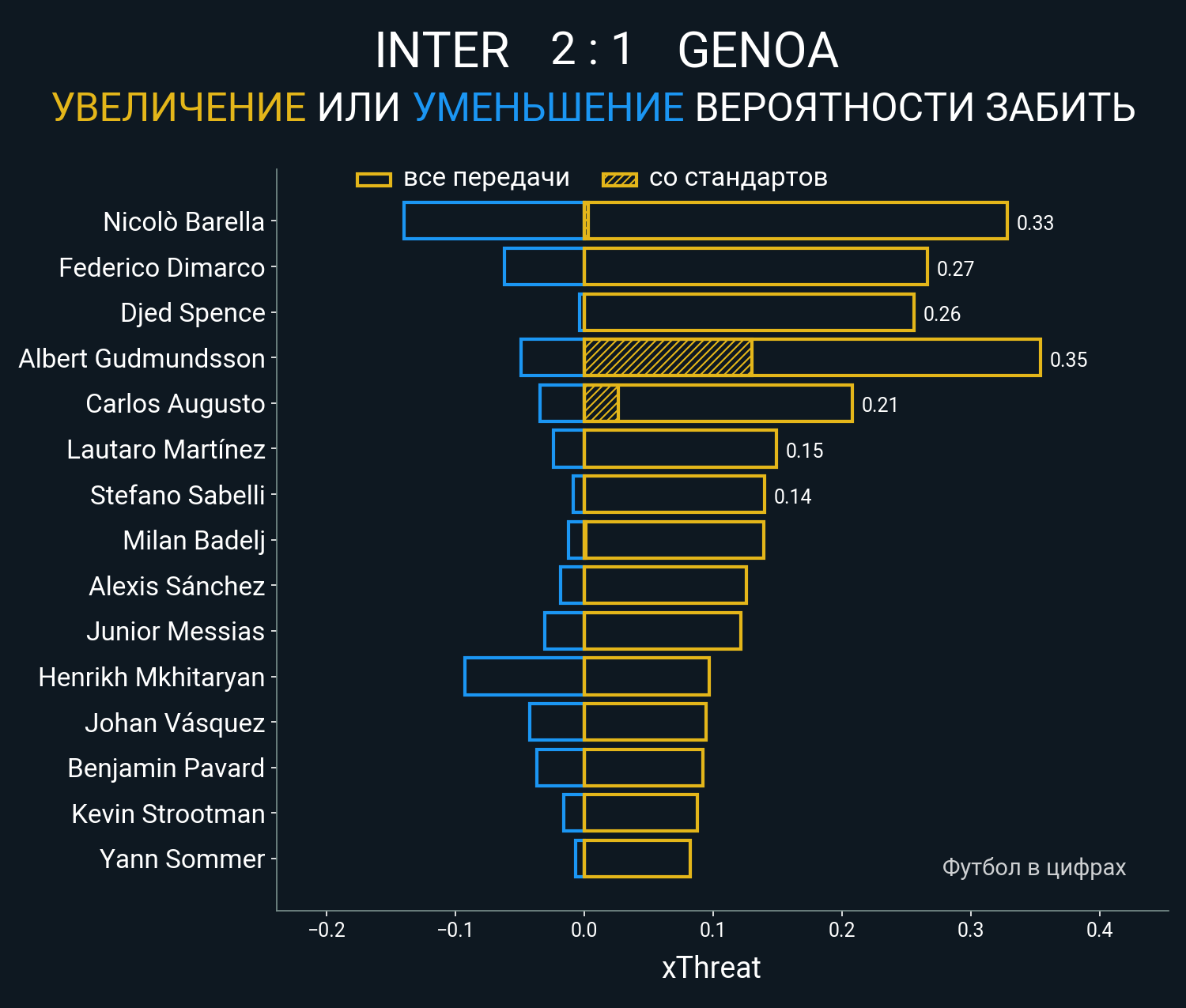 0.22 очка xT (+0.13 со стандартов)