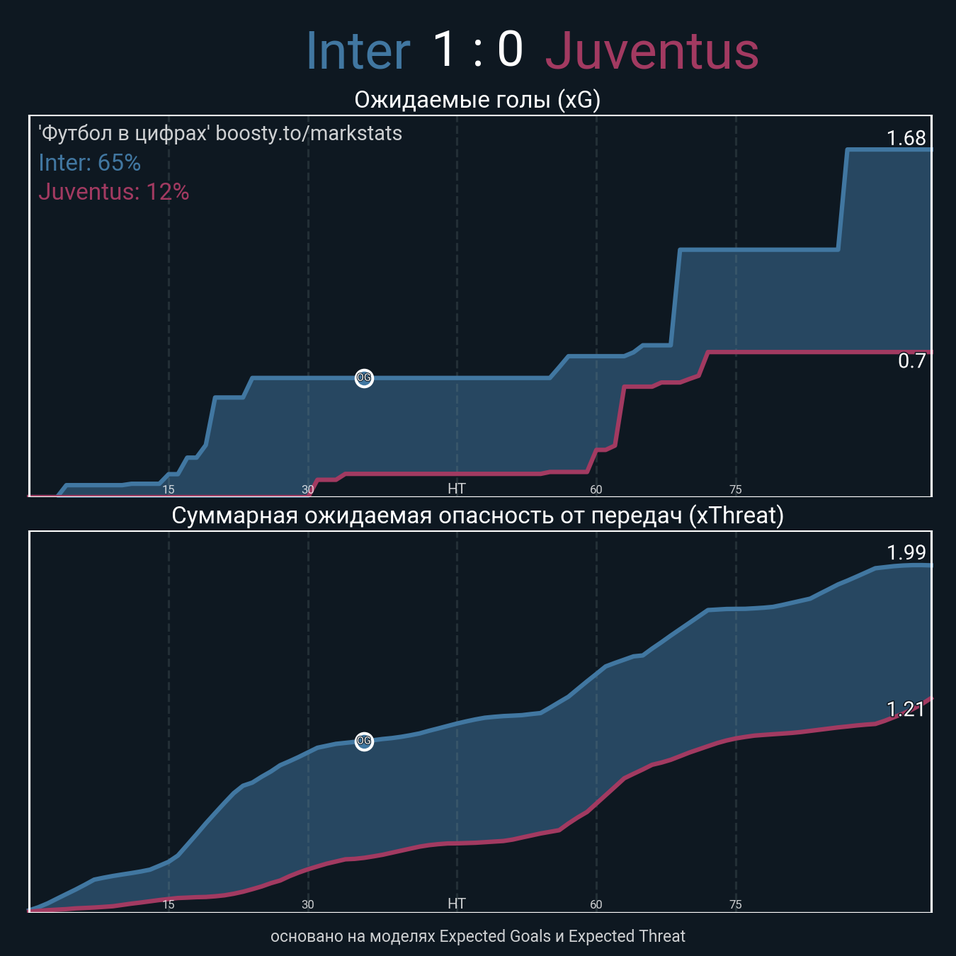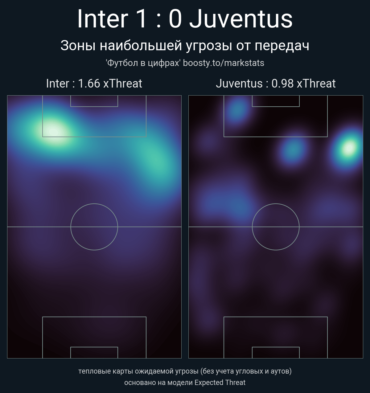 xThreat без учета угловых: 1.66 - 0.98