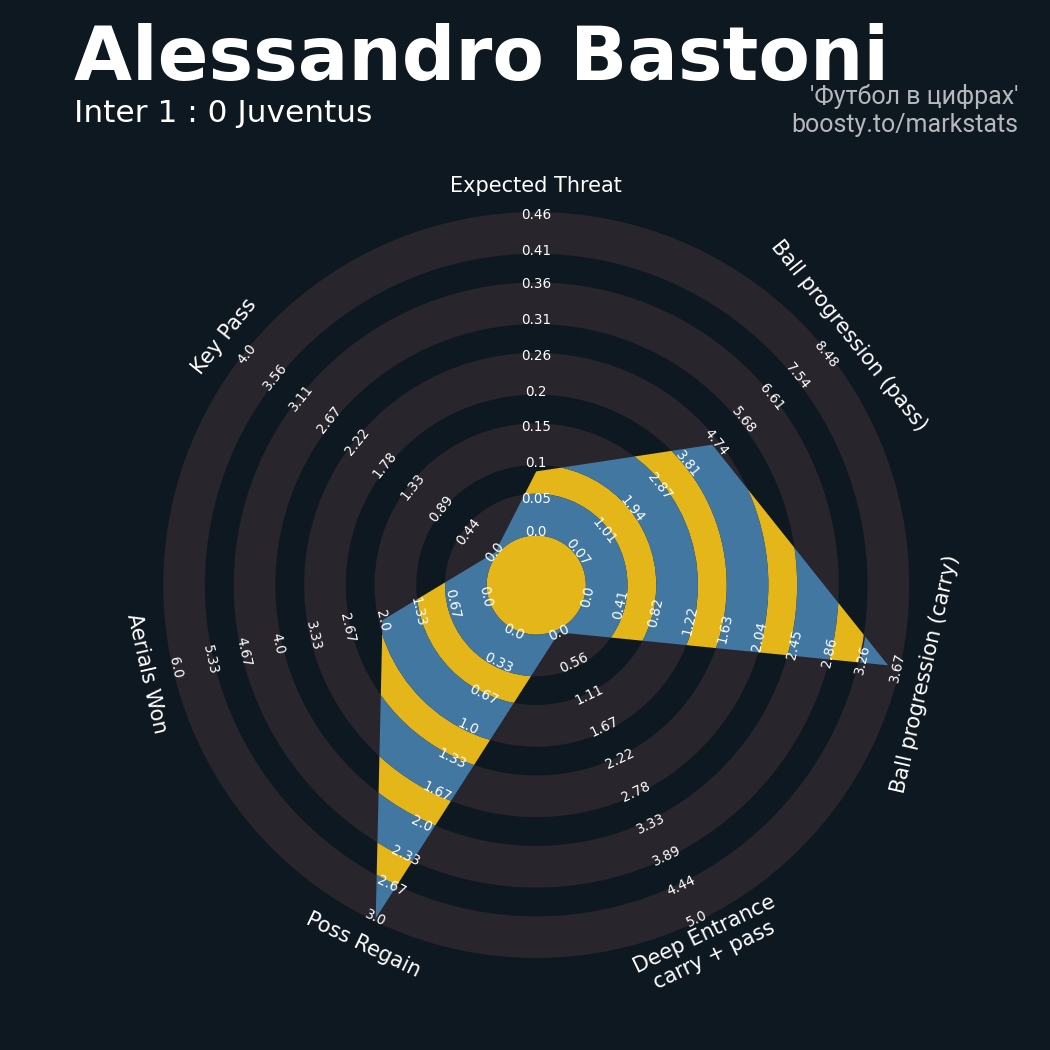 0.46 очка xT (+0.23 со стандартов)